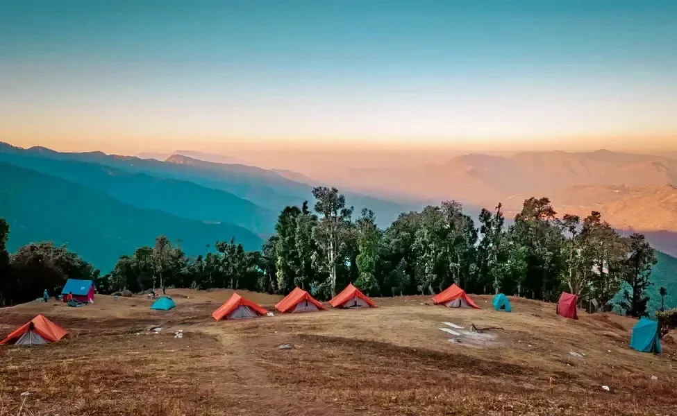 The trek starts from Pantwari village and takes you through oak, rhododendron, and deodar forests. After a steady climb, you’ll reach the beautiful Nag Tibba base campsite — a perfect spot to witness mesmerizing sunsets and sunrises.